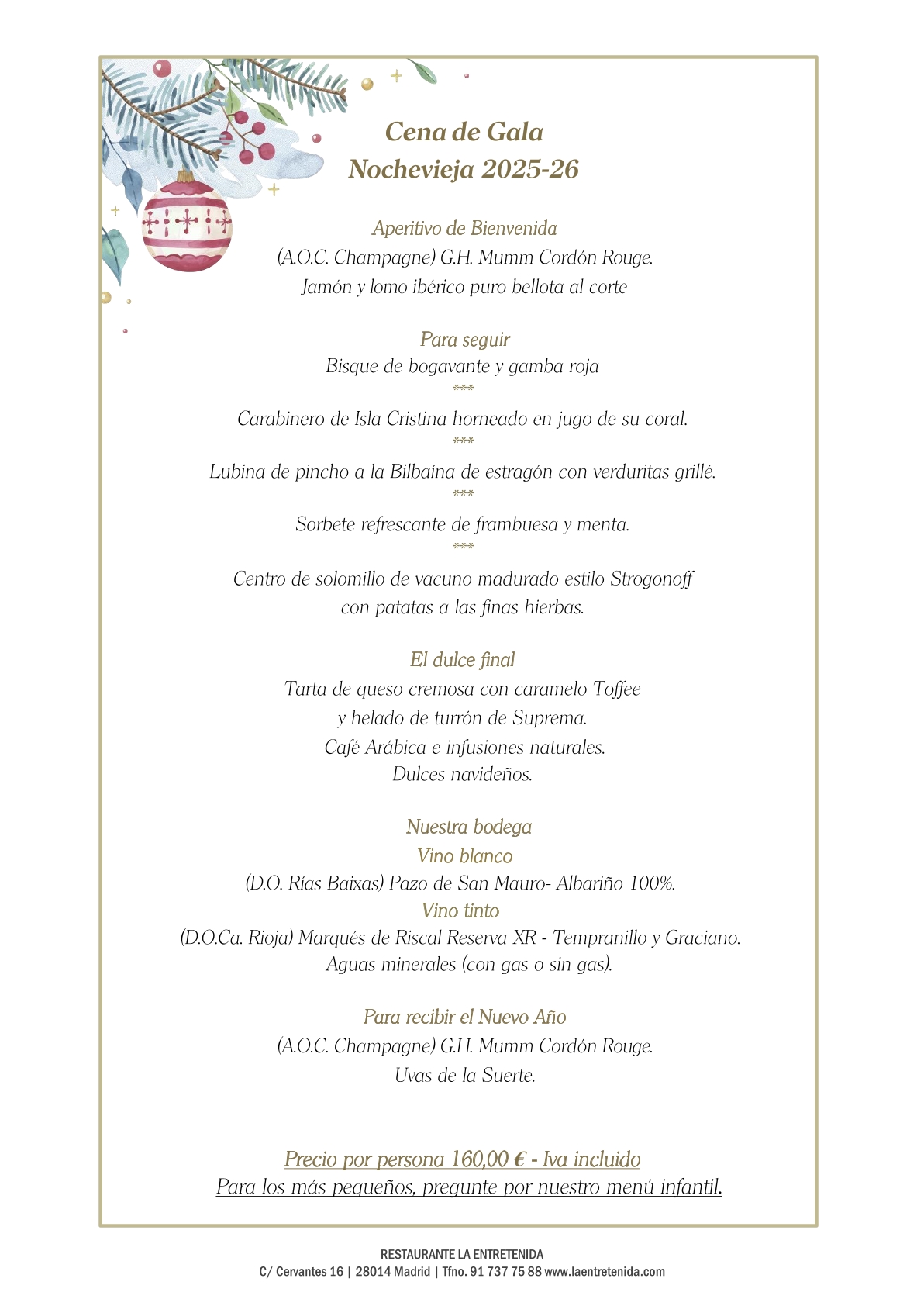 MENÚ ESPECIAL NOCHEVIEJA