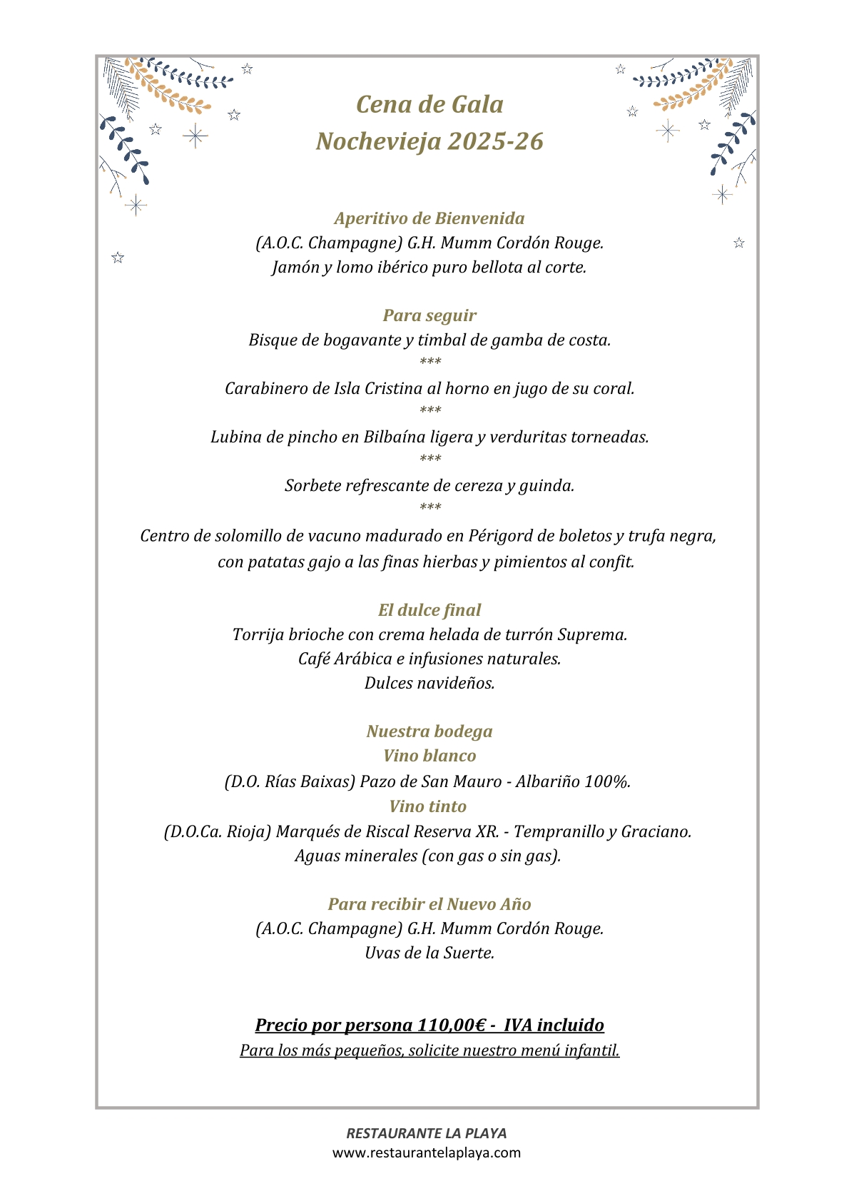 - El menú incluye las bebidas desde el inicio de la comida/cena (entrantes) hasta fin de la misma (postres).