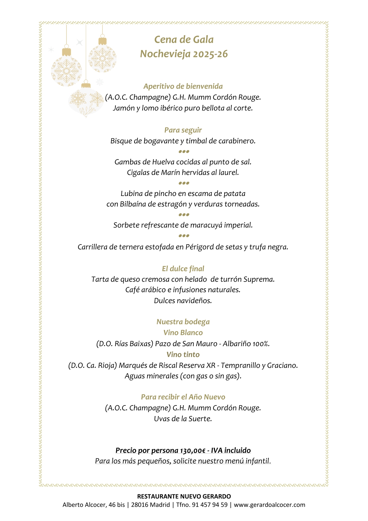MENÚ ESPECIAL NOCHEVIEJA