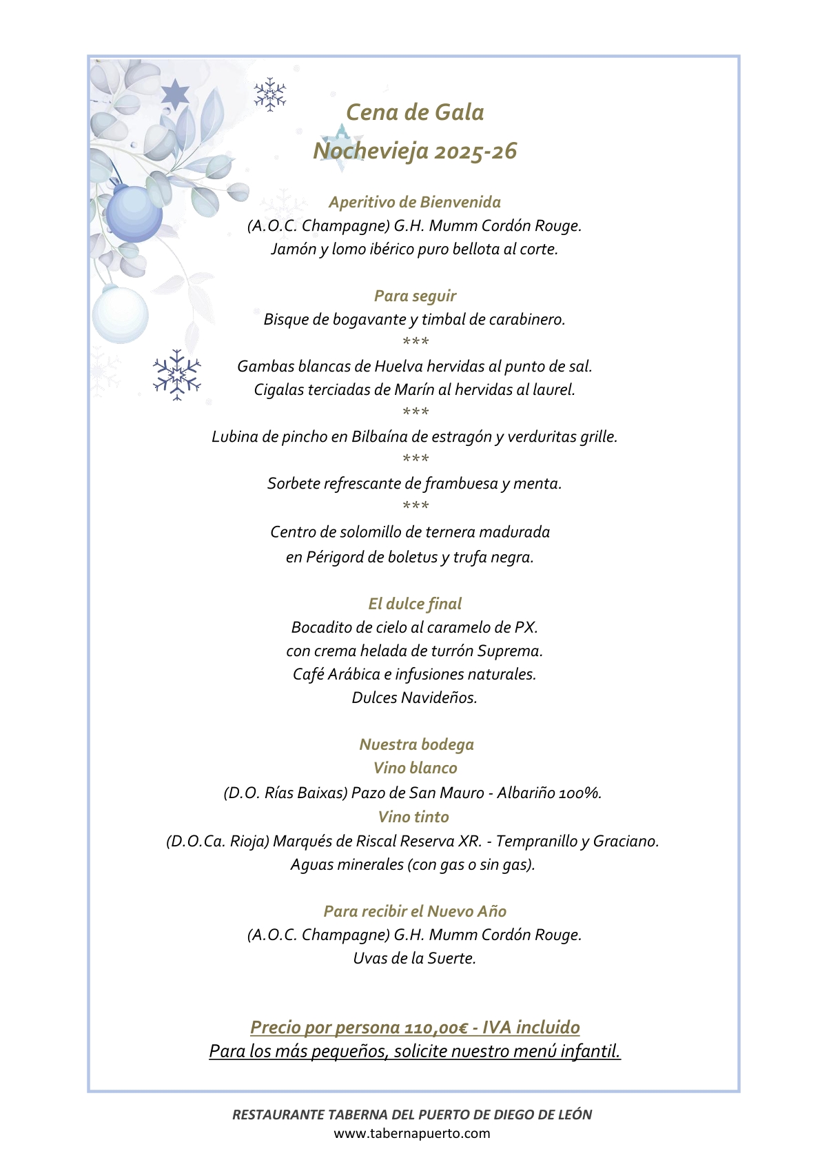 - El menú incluye las bebidas desde el inicio de la comida/cena (entrantes) hasta fin de la misma (postres).